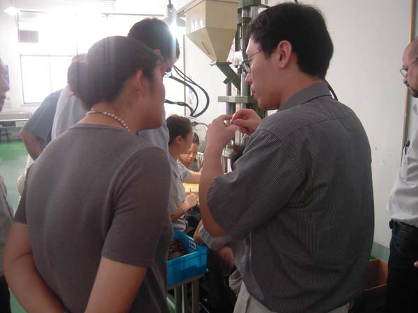 圖一:李總向德國客戶介紹產(chǎn)品注塑細(xì)節(jié) 圖二:陪同翻譯向客戶介紹 圖三:李總向客戶介紹產(chǎn)品壽命檢驗方法 圖四:以色列客戶仔細(xì)驗收產(chǎn)品 圖五:與以色列客戶洽談成功后合影