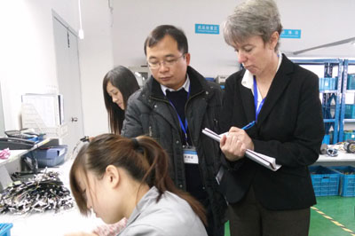 在品質(zhì)部經(jīng)理胡俊的陪同下,客戶參觀了各生產(chǎn)車間、倉儲(chǔ)現(xiàn)場(chǎng)、辦公區(qū)域等。胡經(jīng)理認(rèn)真地向客戶介紹產(chǎn)品實(shí)現(xiàn)的每一道工序,并讓客戶親自動(dòng)手檢驗(yàn)。對(duì)關(guān)鍵過程尤為仔細(xì),查閱作業(yè)指導(dǎo)書、過程檢驗(yàn)記錄等??蛻粢卜浅UJ(rèn)真地向我們了解各種產(chǎn)品的性能和用途,不停的記錄,并連聲稱贊“Very Good!”。