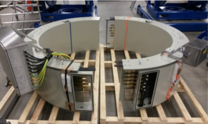 分體式過孔滑環(huán)可以有幾米的直徑?;h(huán)通常由2-4個部分組成,它們在現(xiàn)場連接在一起??讖捷^大,應(yīng)用于散裝物料處理設(shè)備。
