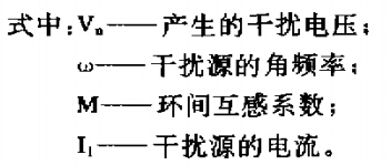 因?yàn)殡娀h(huán)的導(dǎo)線距離很近,環(huán)與環(huán)距離也很近。當(dāng)有交流電通過(guò)時(shí),互感作用使鄰近的導(dǎo)線和環(huán)中產(chǎn)生互感電壓.既干擾電壓。此干擾電壓可用公式如圖