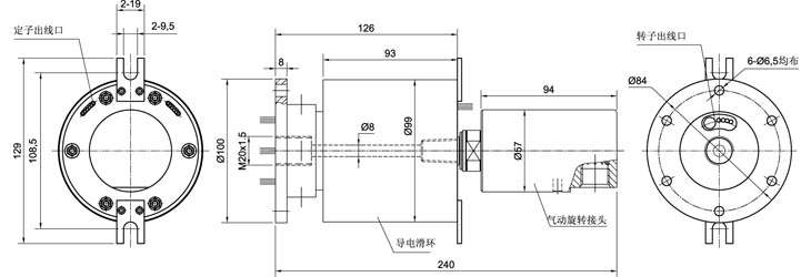 全盛氣(液)電氣動滑環(huán)電信號與氣路、液路混走; 結構緊湊